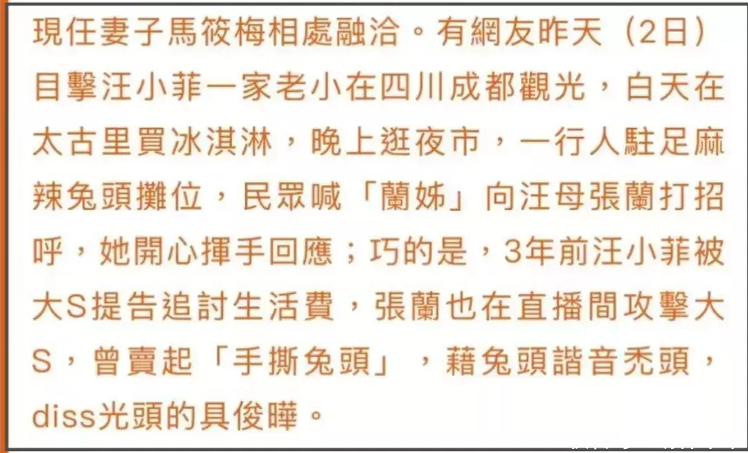 反观S家,眼见着汪小菲、马筱梅和大S留下的一双子女越来越亲密,台媒报道重点竟然放在了别人买兔头是内涵具俊晔上,甚至重提大S和张兰恩怨过往。