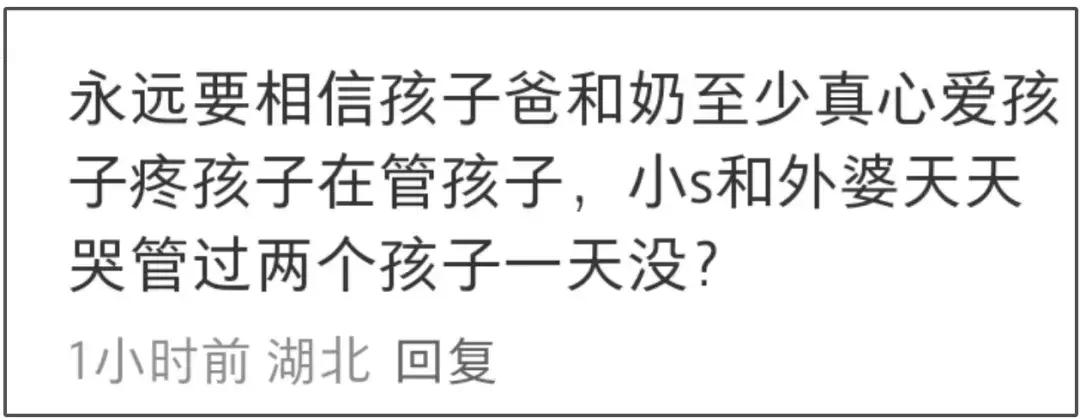 大S遗产分配尚未确定的时候,S妈还会提两句孩子,等到遗产风波平息了,S家就再没有任何一个人出面关心过大S子女。