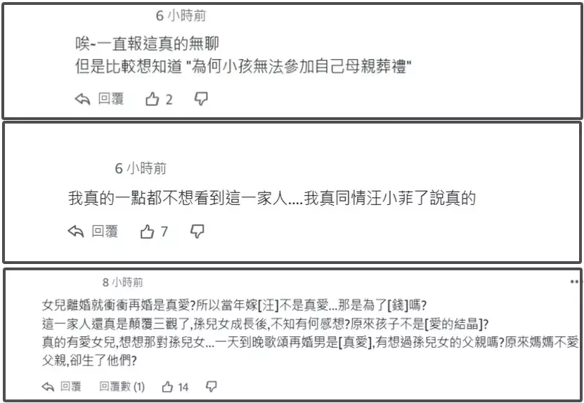 从S家把大S骨灰送上飞机那一刻起,他们全家对大S子女的漠视就掩饰不住了,不给孩子换衣服,不通知孩子大S葬礼,把孩子与大S身后事彻底隔离。