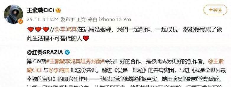两位演员低调交往三年结婚,影展公开秀恩爱后引热议.网友:这才是真爱情?11月3日,演员王紫璇和李鸿其在杂志拍摄的照片里官宣结婚。跟其他人发张照片就说结婚不同,李鸿其写了很长一段话,说要和对方互相成长,当对方的依靠。消息一出网上全是祝福,不过也有不少人好奇他们为啥拖了这么久才公布。